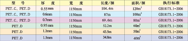 1.產(chǎn)品構(gòu)成 SY-PET聚脂高強(qiáng)復(fù)合防水卷材,選用聚乙烯含有PET材質(zhì)做防水芯層,兩表面用熱軋非織造布稱為PET.C防水卷材,兩表面用短纖針刺非織造布做增強(qiáng)層稱為PET.D防水卷材(兩種卷材以下簡稱PET防水卷材) 2.產(chǎn)品特點(diǎn) a. PET防水卷材最大的特點(diǎn)就是PET材質(zhì)夾在中間,大大提高了產(chǎn)品的機(jī)械強(qiáng)度,而且質(zhì)地柔軟并附有彈性,隨服性好,易施工。 b. PET防水卷材上下非織造布纖維呈無規(guī)則立體交叉結(jié)構(gòu),形成多孔狀表面,可用多種膠粘劑粘接,均可收到良好的粘接效果。 c. PET防水卷材與本公司生產(chǎn)的SY-JF-1高效膠粉或SY-JZJ-1膠粘劑、SY -JF-2接縫密封膠粉配套施工,粘接剝離強(qiáng)度可達(dá)到規(guī)范要求的15N/cm. d. PET防水卷材用水泥膠粘劑粘結(jié)時(shí),水泥膠粘劑進(jìn)入卷材的表面隙中,隨水泥固化為一體,故粘接永久牢固。 e. 施工后的PET防水卷材表面可直接進(jìn)行裝飾、裝修(如貼瓷磚,鑲地板磚等) f. 對(duì)粘貼PET防水卷材的水泥基面含水率沒有特殊要求,只要沒有明水即可施工,且保證工程質(zhì)量。 g. 該產(chǎn)品無害、無毒、無污染,屬綠色環(huán)保型產(chǎn)品。 3.使用范圍 該產(chǎn)品適用于建筑、水利、環(huán)保和交通等領(lǐng)域的防水、防滲、防潮、隔汽和防污染工程。如建筑工程:屋面、地下、廁浴間等;水利工程:水庫、堤壩、圍堰、渠道等;環(huán)保工程:垃圾填埋場(chǎng)、污水處理廠、冶金化工污染物堆放場(chǎng)等;交通工程:橋梁、地鐵、公路、鐵路、洞體、渠道等;園林工程:屋頂花園、種植屋面、園林小品等。 4.產(chǎn)品規(guī)格(依據(jù)工程需要和國家有關(guān)規(guī)定在下列規(guī)格中選擇,如有特殊要求另與我公司商定)